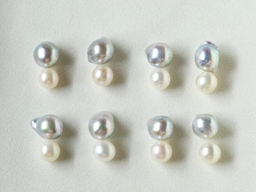 ナチュラルカラーのバロックパールと、ホワイトパールを並べたバイカラーデザイン。
